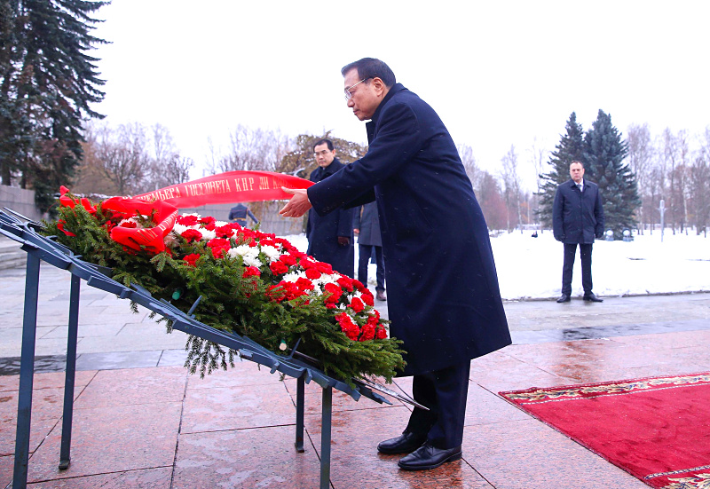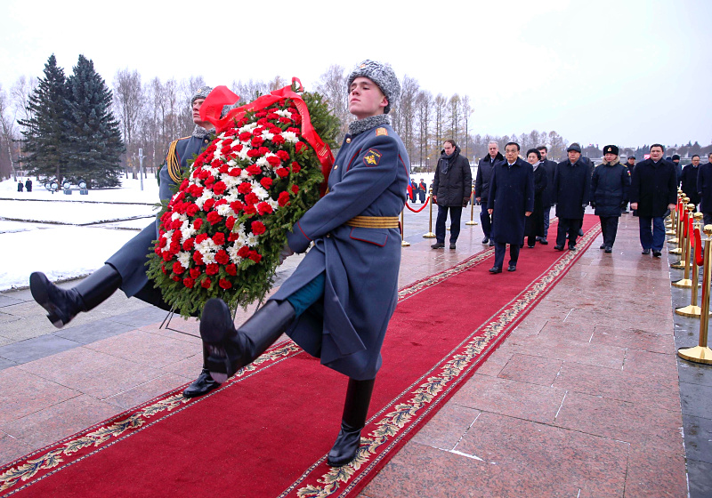 關鍵詞:李克強;比斯卡廖夫;圣彼得堡;紀念碑;花圈