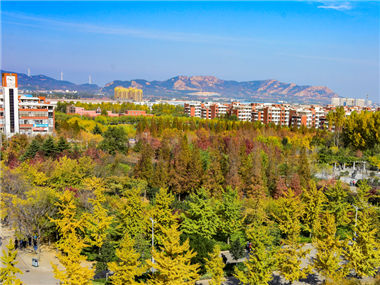 2016年11月9日,山東青島,山東科技大學(xué),校園內(nèi)種植的數(shù)千棵銀杏成熟,遍地金黃,學(xué)生行走在校園中,猶如走在一幅金色的畫卷中,美不勝...