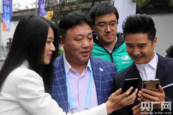 第一視頻領(lǐng)導為田亮演示快兔出行APP