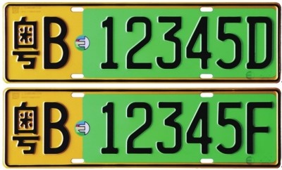 據(jù)介紹,號(hào)牌外廓尺寸為480mm×140mm,號(hào)牌長(zhǎng)度比普通號(hào)牌增加40mm,其中大型新能源汽車(chē)后號(hào)牌寬度減少80mm。與普通汽車(chē)號(hào)牌相比,外觀式樣上主要有以下變化:新能源汽車(chē)號(hào)牌式樣底色以綠色為主色調(diào),突出綠色環(huán)保的寓意,便于在服務(wù)管理中準(zhǔn)確識(shí)別。再有,新能源汽車(chē)號(hào)牌,按照不同車(chē)輛類(lèi)型實(shí)行分段管理,字母“D”代表純電動(dòng)汽車(chē),字母“F”代表非純電動(dòng)汽車(chē)(包括插電式混合動(dòng)力和燃料電池汽車(chē)等)。小型汽車(chē)號(hào)牌中“D”或“F”位于號(hào)牌序號(hào)的第一位,大型汽車(chē)號(hào)牌中“D”或“F”位于號(hào)牌序號(hào)的最后一位。