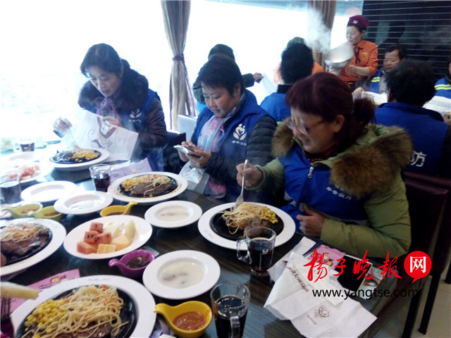 揚(yáng)子晚報網(wǎng)11月25日訊(通訊員 施澎 戴勇 記者 萬凌云) 時近年末天寒地凍,然而社會各界人士關(guān)愛環(huán)衛(wèi)工人的熱情卻一波波來襲。25日中午,在鎮(zhèn)江市區(qū)夢溪路一餐廳內(nèi),鎮(zhèn)江50名環(huán)衛(wèi)工人齊聚一堂,“嘗鮮”吃牛排。這次溫暖、關(guān)愛環(huán)衛(wèi)工公益活動,是由鎮(zhèn)江公益組織“家家樂助殘助老服務(wù)中心”和這家餐廳聯(lián)合發(fā)起的。而與以往社會給環(huán)衛(wèi)工人發(fā)“愛心福利”的方式不同,這次前來就餐的環(huán)衛(wèi)工中,大多數(shù)都由愛心人士走到作業(yè)地段上,現(xiàn)場邀請召集而來的。由此,面對天上掉下來的“牛排”,邀請人還被當(dāng)成了“騙子”。