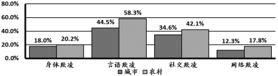 城市與農(nóng)村學(xué)校的學(xué)生遭受校園暴力情況
