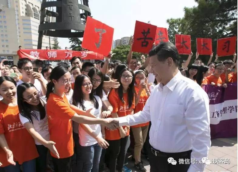 青年節(jié),他去往北京大學(xué),聽(tīng)學(xué)生朗誦《沁園春·長(zhǎng)沙》,與哲學(xué)家湯一介促膝長(zhǎng)談,座談時(shí)指出要讓青年學(xué)子“扣好人生的第一?圩印;教師節(jié),他去往北師大,稱贊教師是人類歷史上最古老、最偉大、最神圣的職業(yè)之一,稱“國(guó)將興,必貴師而重傅”;兒童節(jié),在海淀民族小學(xué),習(xí)近平則系著紅領(lǐng)巾,與小朋友互致少先隊(duì)禮,給他們講自己小時(shí)候的故事,告訴他們“精忠報(bào)國(guó)是一生目標(biāo)”;更早時(shí),他視察中南大學(xué)、國(guó)防科大,念念不忘的也是建設(shè)“世界一流大學(xué)”。