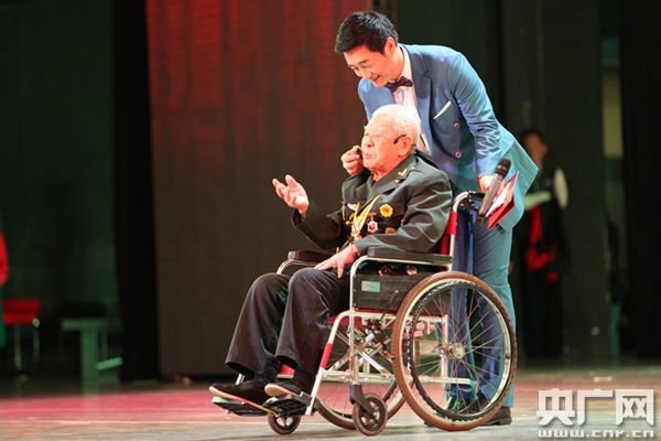 九十四歲高齡的東縱老戰(zhàn)士戴志鵬老人帶來的《老兵的幸福串燒》,引發(fā)了全場熱烈的持續(xù)的掌聲