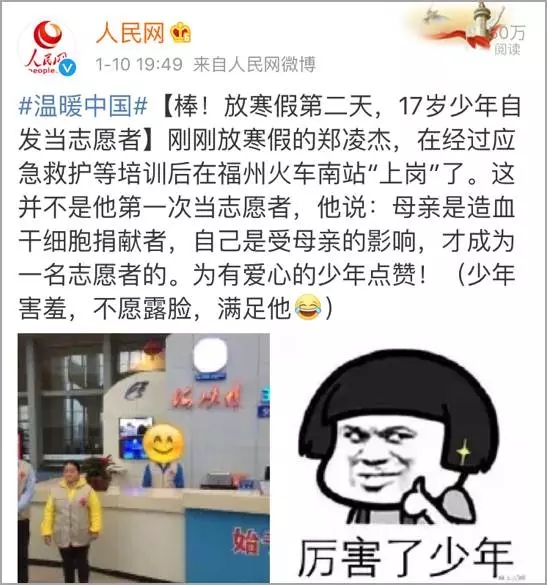 據(jù)悉,此次新春走基層主題采訪活動(dòng)還在新浪微博開(kāi)設(shè)了#溫暖中國(guó)#和#中國(guó)溫度#兩個(gè)微話題,截至目前,兩個(gè)話題閱讀量已超過(guò)3.4億次,討論數(shù)超過(guò)3億次。