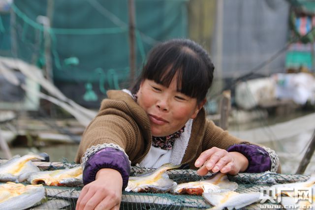 在家門口、街道邊,常有漁民在勞作,有的在剝生蠔,有的在晾曬黃魚干,村民說:“新鮮的黃魚一斤20塊左右,曬成魚干后一斤可以賣到五六十!毕迦烁噙是從事自己熟悉的漁業(yè)相關工作。