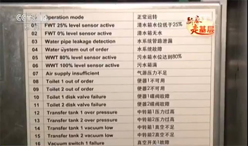 由于目前動(dòng)車組的衛(wèi)生間都由電腦控制,出現(xiàn)問題大多會(huì)顯示相應(yīng)代碼,大的故障都能以此來排查,已經(jīng)非常先進(jìn)。然而如何排除這些故障,還要機(jī)械師們靠經(jīng)驗(yàn)來判斷。