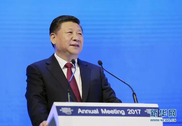 圖為:2017年1月17日,國(guó)家主席習(xí)近平在瑞士達(dá)沃斯國(guó)際會(huì)議中心出席世界經(jīng)濟(jì)論壇2017年年會(huì)開(kāi)幕式,并發(fā)表題為《共擔(dān)時(shí)代責(zé)任共促全球發(fā)展》的主旨演講。