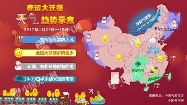 全國大部春節(jié)前晴多雨雪少 28日起雨雪增多