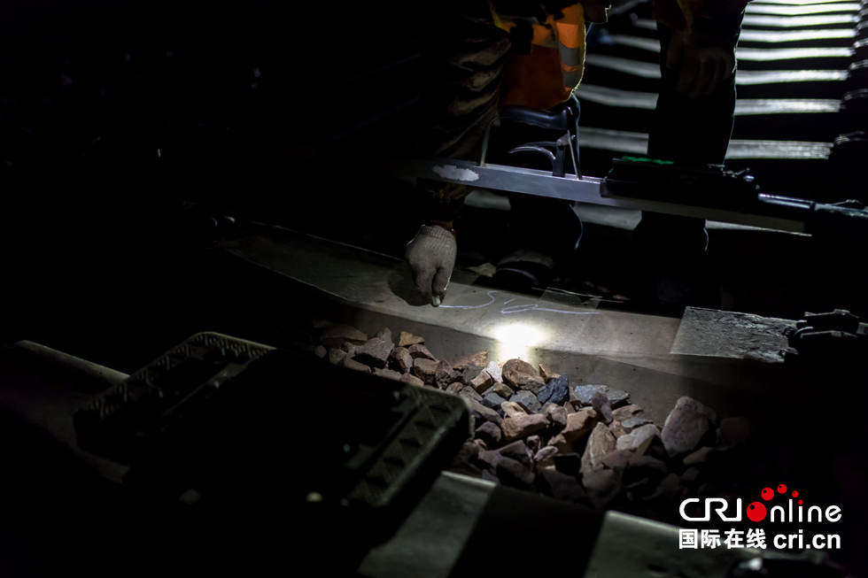 白天時會有動檢車對鐵軌進行檢查,動檢車每通過一段鐵軌都會將車身狀態(tài)記錄并反饋給各工區(qū),每次作業(yè)養(yǎng)路工都會拿著一張紙,記錄當天作業(yè)的區(qū)域。 -