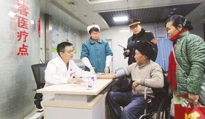 1月29日,宋云習大爺與老伴乘坐K819次列車回重慶,在河南鄭州火車站感到頭暈目眩行動困難。工作人員得知后,急忙把宋云習送到車站醫(yī)療點。據(jù)悉,春運期間鄭州火車站與鄭州大學第五附屬醫(yī)院合作,給旅客免費提供日常藥品、急救處理等服務。圖為醫(yī)療點醫(yī)師正為旅客量血壓。朱佩嫻 李慶偉攝影報道(人民視覺)