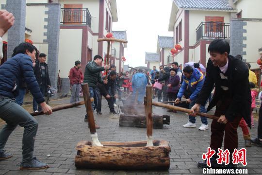 貞豐縣者相鎮(zhèn)茶林社區(qū)搬遷戶打糍粑迎新年