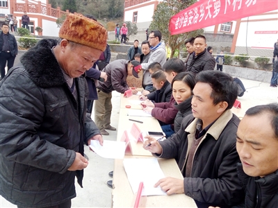 搬遷戶到大蘿卜村易地扶貧搬遷中心安置點領鑰匙