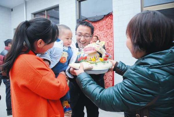 每年臘月和年初都是村里結(jié)婚、訂婚、過(guò)壽的旺季,王銀菊的花饃生意自然異常紅火,街坊鄰里都來(lái)預(yù)訂,王銀菊忙得不可開(kāi)交,連串親戚的工夫都沒(méi)有。早上6點(diǎn)起床,一直到晚上10點(diǎn)才收工,制作花饃時(shí),王銀菊對(duì)每道工序都十分講究,溫水、發(fā)酵、揉面、捏形、蒸制、著色、插面花……都按照嚴(yán)格的規(guī)范純手工完成。王銀菊講,“干這個(gè)行當(dāng)必須要心靈手巧”。王銀菊還展示了她最拿手的十二生肖花饃,一個(gè)個(gè)小動(dòng)物惟妙惟肖。