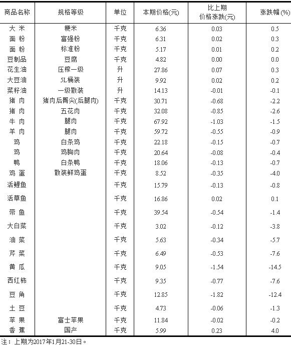 中新網(wǎng)2月14日電 據(jù)統(tǒng)計局網(wǎng)站消息,統(tǒng)計局今日發(fā)布50個城市主要食品平均價格變動情況,數(shù)據(jù)顯示,2月1-10日,糧油類平均價格小幅上漲,肉禽蛋魚等平均價格多走低,蔬菜類普遍大幅回落,黃瓜價格跌14.5%,豆角跌12.4%。