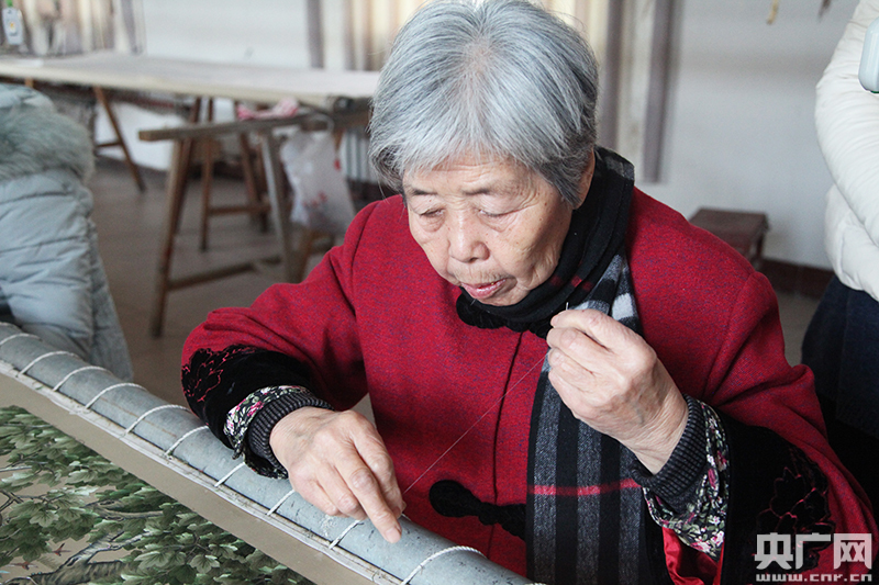 年過八旬的“汴繡皇后”王素花 (央廣網(wǎng)記者 高藝寧 攝)