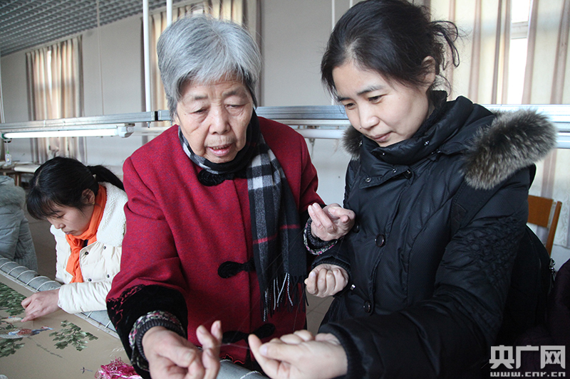 王素花和徒弟的刺繡作品 (央廣網(wǎng)記者 高藝寧 攝)