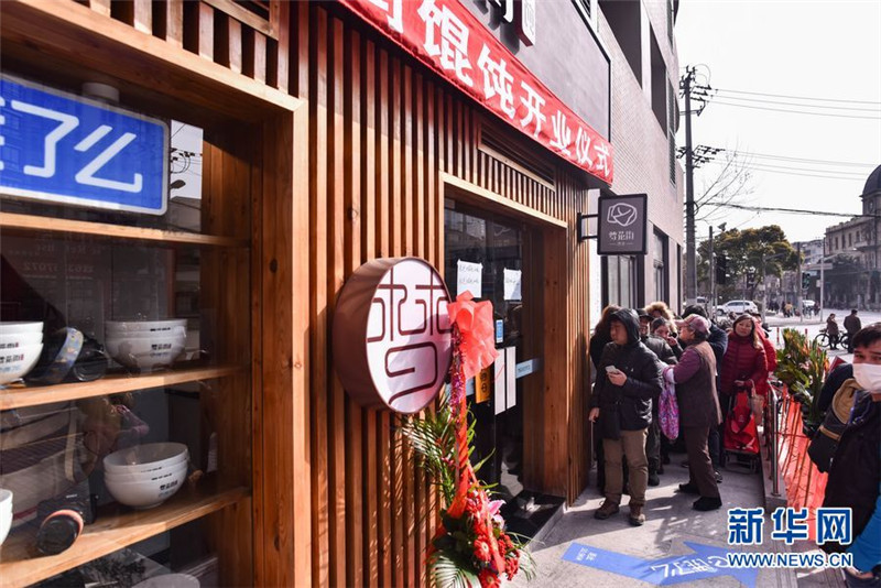 2月19日早上8點,在上海中華路的夢花街餛飩店門口早已門庭若市。(新華網(wǎng)嚴曉瑜 攝)
