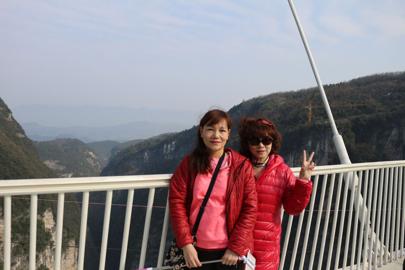 海外網(wǎng)看到,有一群人趴在玻璃上凹造型自拍,便問(wèn)她們來(lái)自哪里,她們說(shuō)是來(lái)自臺(tái)灣高雄,從臺(tái)灣桃園機(jī)場(chǎng)飛到張家界。