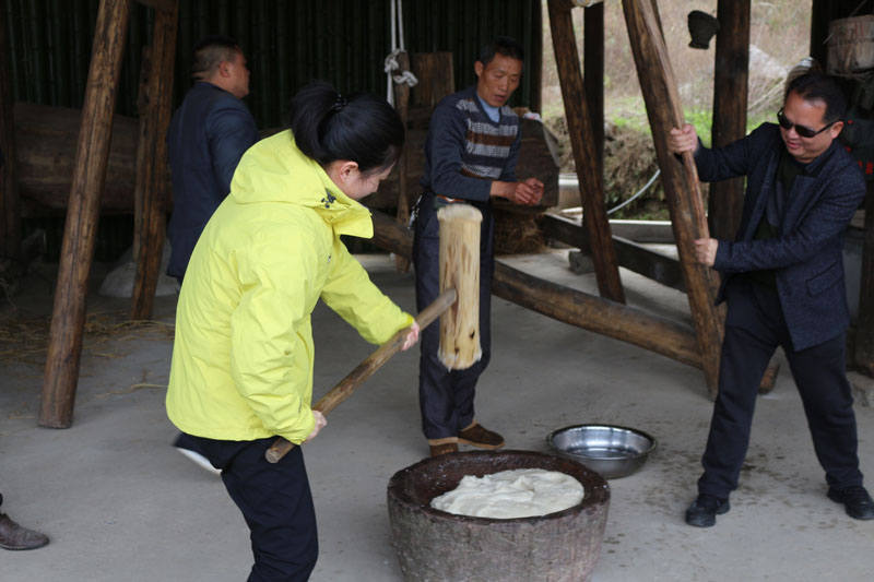 游客在體驗(yàn)民俗活動(dòng)打糍粑