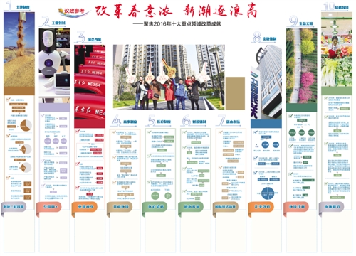 編者按 回眸2016年,各領域重點改革風生水起。農村土地“三權分置”得到確立,農村土地承包責任制賦予時代創(chuàng)新;中央與地方財政事權和支出責任明確劃分,現(xiàn)代財政制度輪廓初現(xiàn);商事制度改革持續(xù)推進,市場活力顯著增強;深港通如期落地,資本市場雙向開放再進一步……與此同時,落實脫貧攻堅責任、構建綠色金融體系、營改增試點全面推開、教育醫(yī)療養(yǎng)老利民惠民等主要領域四梁八柱性質的改革主體框架基本確立。
