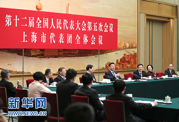 3月5日,中共中央總書(shū)記、國(guó)家主席、中央軍委主席習(xí)近平參加十二屆全國(guó)人大五次會(huì)議上海代表團(tuán)的審議。 新華社記者蘭紅光攝