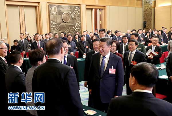 3月5日,中共中央總書(shū)記、國(guó)家主席、中央軍委主席習(xí)近平參加十二屆全國(guó)人大五次會(huì)議上海代表團(tuán)的審議。 新華社記者王曄攝