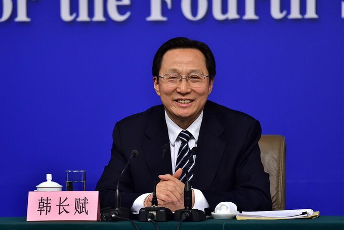 農(nóng)業(yè)部部長韓長賦回答中外記者的提問。