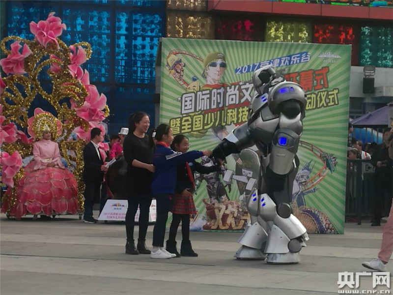 中國(guó)首個(gè)機(jī)器人藝人NK01亮相北京歡樂(lè)谷。