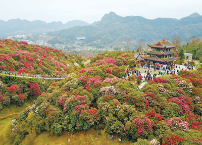 4月2日,貴州畢節(jié),百里杜鵑景區(qū)的原始杜鵑林吸引游客前來(lái)踏青賞花,休閑度假。新華社記者 陶 亮攝