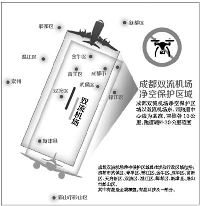 民航空中管制部門工作人員告訴北青報記者,成都雙流機場凈空保護區(qū)域是以成都雙流國際機場東、西跑道中心線為基準,兩側各10公里,跑道端外20公里的范圍來劃定的。具體包括下列行政區(qū)域:成都市武侯區(qū)、青羊區(qū)、錦江區(qū)、金牛區(qū)、成華區(qū)、高新區(qū)、天府新區(qū)、雙流區(qū)、溫江區(qū)、郫縣、新津縣、眉山市彭山區(qū)。