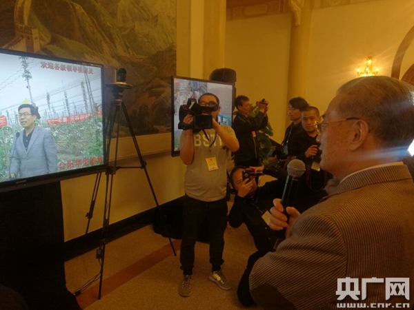 第十一屆全國政協(xié)副主席、中國人口福利基金會會長、中國老年保健醫(yī)學研究會總顧問李金華在會前與陜西果農(nóng)進行遠程對話。