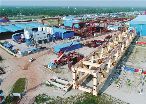 孟加拉帕德瑪大橋的施工現(xiàn)場(chǎng)圖。(資料圖片)
