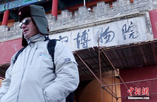 神武門建于明永樂十八年(1420年),為紫禁城北門,神武門外墻所嵌“故宮博物院”五字匾額為中國著名歷史學家郭沫若于1971年題寫,40余年來已成為故宮博物院的重要標識,亦是觀眾參觀故宮博物院后合影留念時的經(jīng)典背景。 中新社記者 杜洋 攝