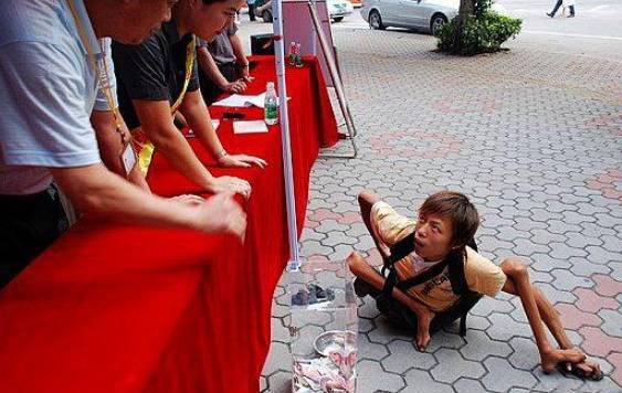不能忘記,“地震最感人乞丐” 龔忠誠用手“走”著,先后四次把全部乞討所得投進(jìn)募捐箱;
