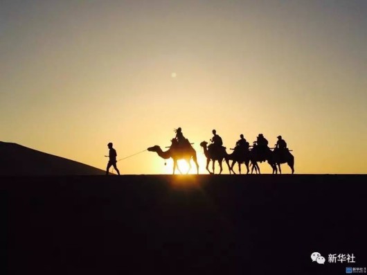 2016年6月15日,在甘肅省敦煌市鳴沙山拍攝的駝隊(duì)。新華社發(fā)