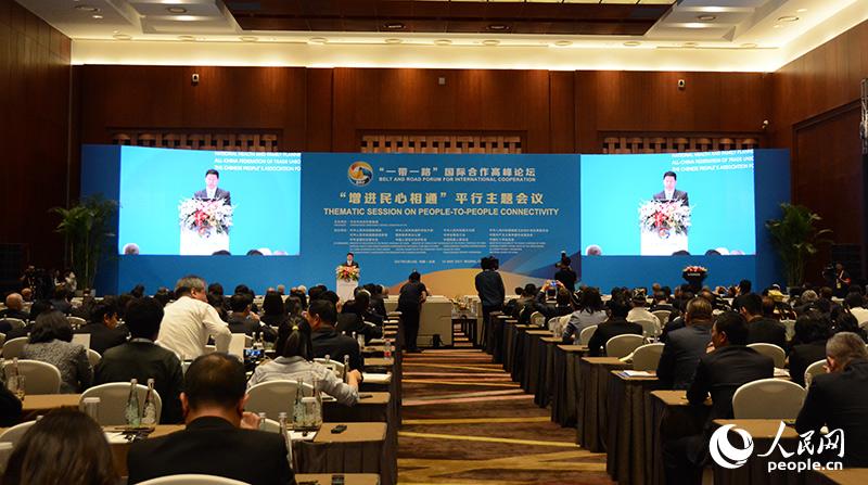 5月14日下午1時30分許,來自60多個國家的400余名代表在《一帶一路is how》短片歡快的音樂聲中陸續(xù)進入“增進民心相通”平行主題會議會場,共話“一帶一路”建設(shè),共同架起民心相通的友誼之橋。