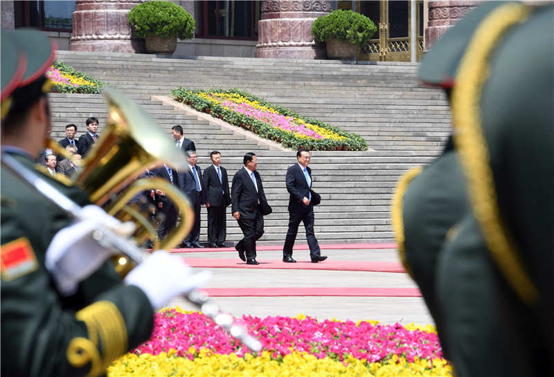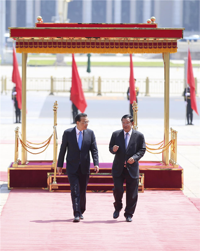 李克強表示,中柬友誼是兩國老一代領導人共同締造并精心培育的,歷久彌堅。習近平主席去年對柬進行國事訪問,在新的國際政治經(jīng)濟形勢下發(fā)揚光大了中柬友好。中方愿同柬方保持高層交往和戰(zhàn)略溝通,深化務實合作,密切人文交流,就國際和地區(qū)事務加強協(xié)調,更好造福兩國和本地區(qū)各國人民。