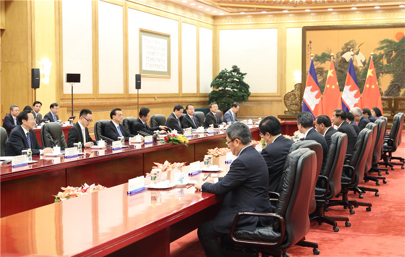 李克強強調,明年是中國同東盟建立戰(zhàn)略伙伴關系15周年,柬埔寨將主辦瀾滄江-湄公河合作第二次領導人會議。中方支持柬方通過有關區(qū)域、次區(qū)域平臺發(fā)揮積極作用,愿與柬方和有關各方共同努力,聚焦合作,共謀發(fā)展,打造本地區(qū)和平穩(wěn)定、共享繁榮的命運共同體。