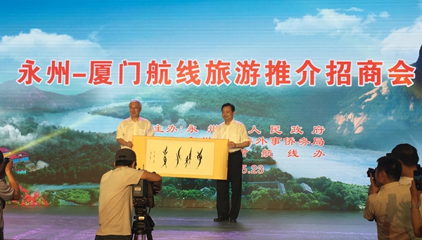 央廣網(wǎng)廈門5月24日消息(記者 梁曉蕾) 時值廈門—永州航線開通兩月之際,為進(jìn)一步推動永州旅游產(chǎn)業(yè)發(fā)展、加大與廈門旅游交流合作,5月23日,永州市人民政府舉辦“廈門—永州航線旅游招商推介會”,向現(xiàn)代化國際性港口風(fēng)景旅游城市廈門展示山水秀麗、底蘊(yùn)深厚的瀟湘風(fēng)情、永州古韻。