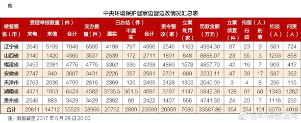 據(jù)統(tǒng)計(jì),截至2017年5月28日20:00,共計(jì)受理舉報(bào)35523個(gè)(其中,來電舉報(bào)20811個(gè),來信舉報(bào)14712個(gè))。