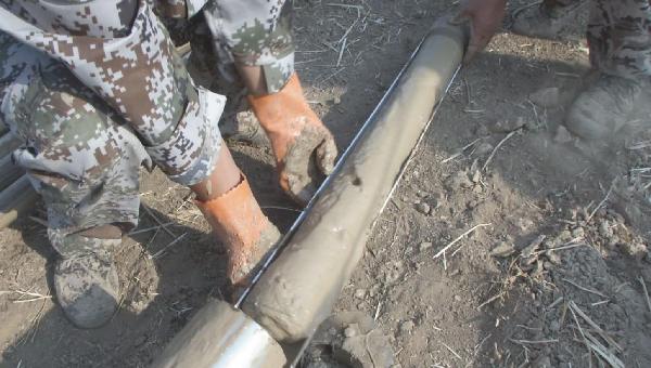 在現(xiàn)場記者了解到,中國地質(zhì)調(diào)查局的地質(zhì)鉆探車,在五天的時間里打出一眼直徑 110毫米、100米深的地質(zhì)鉆探孔,而每鉆探兩米,工作人員就會提取一次巖芯,現(xiàn)場將巖芯歸納分類,再分析地下的巖性特征。