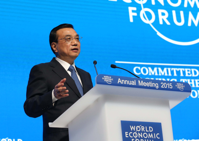 2015年1月21日,李克強總理在瑞士達沃斯舉行的世界經(jīng)濟論壇全會發(fā)表特別致辭并回答提問。
