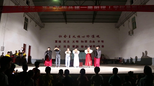 29日,文法學(xué)院社會(huì)服務(wù)隊(duì)在蒲山鎮(zhèn)文化中心,舉行了以傳統(tǒng)文化活動(dòng)為主題的文藝演出。詩詞吟唱《桃夭》、漢舞《飛天》、民族舞《鴻雁》、話劇《二十四孝之蘆衣順母》等節(jié)目,贏得了父老鄉(xiāng)親的陣陣掌聲和喝彩;文化中心精彩的民間舞蹈表演,也讓隊(duì)員們耳目一新,領(lǐng)略民間藝術(shù)的魅力。演出之后,雙方對(duì)傳統(tǒng)文化的共享、共傳、共建等合作項(xiàng)目達(dá)成一致意見,對(duì)民間藝術(shù)和民間文化等非物質(zhì)文化遺產(chǎn)的發(fā)掘、調(diào)研、保護(hù)和傳承等方面進(jìn)行了深入的交流和探討。隨著“社會(huì)實(shí)踐基地”的簽訂和揭牌儀式的落幕,本次活動(dòng)圓滿結(jié)束。