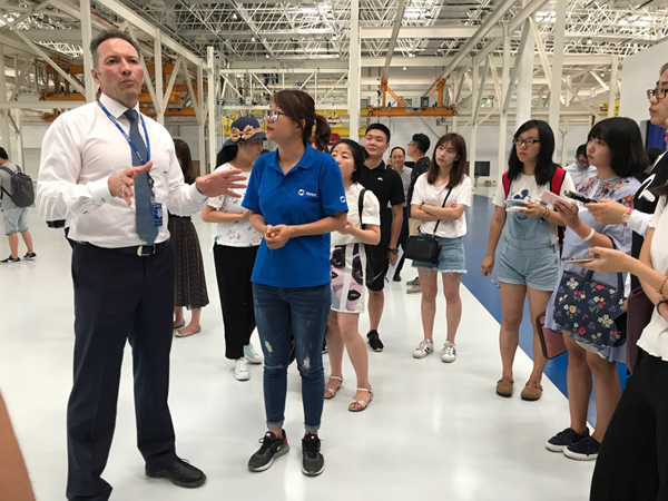 四川國(guó)際航空發(fā)動(dòng)機(jī)保稅維修公司、保稅維修基地項(xiàng)目經(jīng)理菲利普在給參加活動(dòng)的媒體講解。