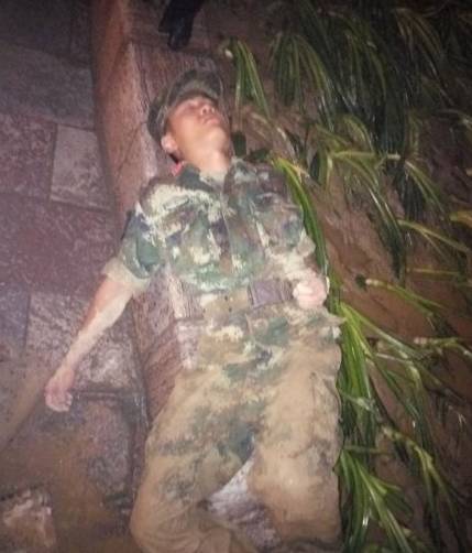 7月3日晚至4日,洪峰過境廣西柳州后,武警廣西總隊柳州支隊近200名官兵在廣西柳州市沿江路一帶清淤,并協(xié)助部分急需回家老人小孩安全返回。經(jīng)連夜救援清淤后,武警戰(zhàn)士們顧不上洗去滿身污泥,有的躺在地上、有的坐在路邊睡著了……