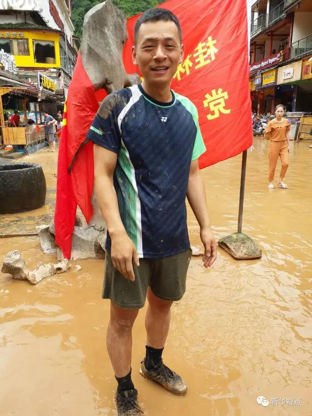 來自湖南的仇寧川,原本計劃來陽朔觀賞20元人民幣上的背景圖取景點,沒想到遇上了洪水。他馬上找到陽朔縣委武裝部要求參加救援,并隨沖鋒舟前往災(zāi)情較嚴重的鄉(xiāng)鎮(zhèn)轉(zhuǎn)移群眾。他說:“我當過兵,體能、泅渡、攀爬等技能都很好,這里正好能夠用得上!”當記者說給他拍一張工作照時,他連連擺手:“不要拍我,多報道其他救援人員吧,他們才是真正的英雄。”
