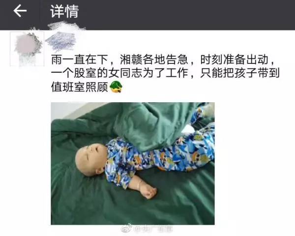 洪水侵襲長江兩岸,多地出現(xiàn)內(nèi)澇險情。武警水電第四支隊一名處于哺乳期的女同志為了不耽誤工作,就把八個月大的孩子帶到了辦公室。媽媽在忙著,孩子就在一邊悄悄睡覺。