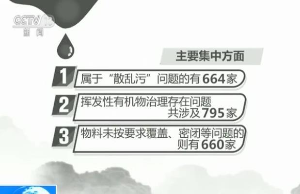 據(jù)了解,第六輪次的強(qiáng)化督查從6月23號(hào)持續(xù)到了7月6號(hào),接受檢查的5879家企業(yè)和單位中,有2627家存在環(huán)境問題,其中80%以上的問題,主要集中在3個(gè)方面: