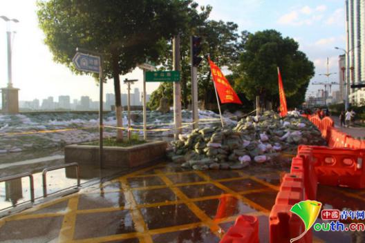 位于長(zhǎng)沙市湘江中路與中山路交叉口的防洪點(diǎn) 中國(guó)青年網(wǎng)記者 劉利影攝